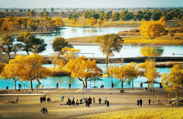 独特自然景观:汇聚了中国最大的内陆河塔里木河、中国最大的沙漠塔克拉玛干沙漠和原始胡杨林,在神女湖可乘船游览,欣赏湖水与沙漠相映成趣的美景,还能通过浮桥横跨塔里木河,领略两岸风光。