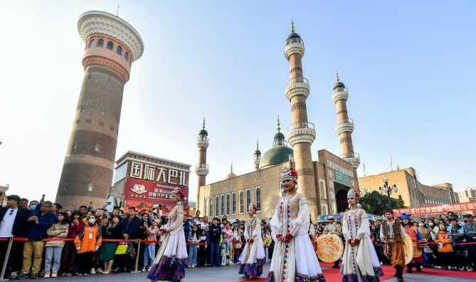 1.沉浸式民俗文化体验:走进 “中亚风情缩影” 的新疆国际大巴扎,打卡标志性的丝绸之路观光塔,登塔俯瞰大巴扎全景;观赏维吾尔族传统歌舞表演,看民间艺人弹奏都塔尔、手鼓,近距离感受十二木卡姆艺术的灵动,还能参与互动舞蹈,深度融入新疆民俗氛围。