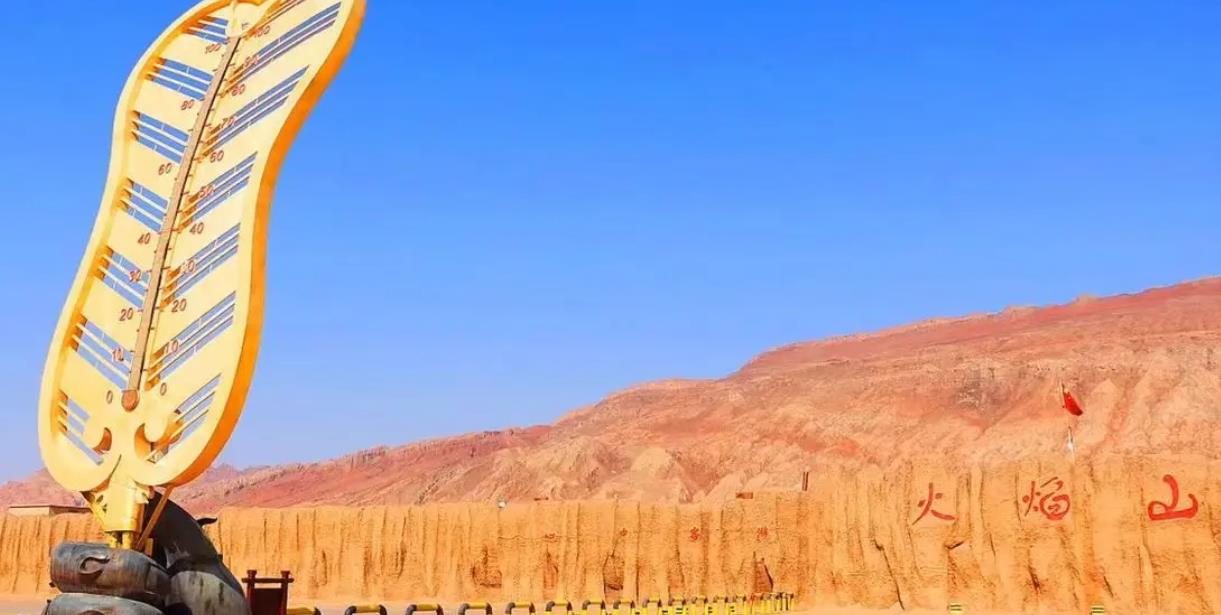 火焰山是中国最热的地方,夏季最高气温高达摄氏47.8度,地表最高温度高达摄氏70度以上,沙窝里可烤熟鸡蛋。由于地壳运动断裂与河水切割,山腹中留下许多沟谷,主要有桃儿沟、木头沟、吐峪沟、连木沁沟、苏伯沟等。而这些沟谷中却绿荫蔽日,风景秀丽,流水潺潺,瓜果飘香。
