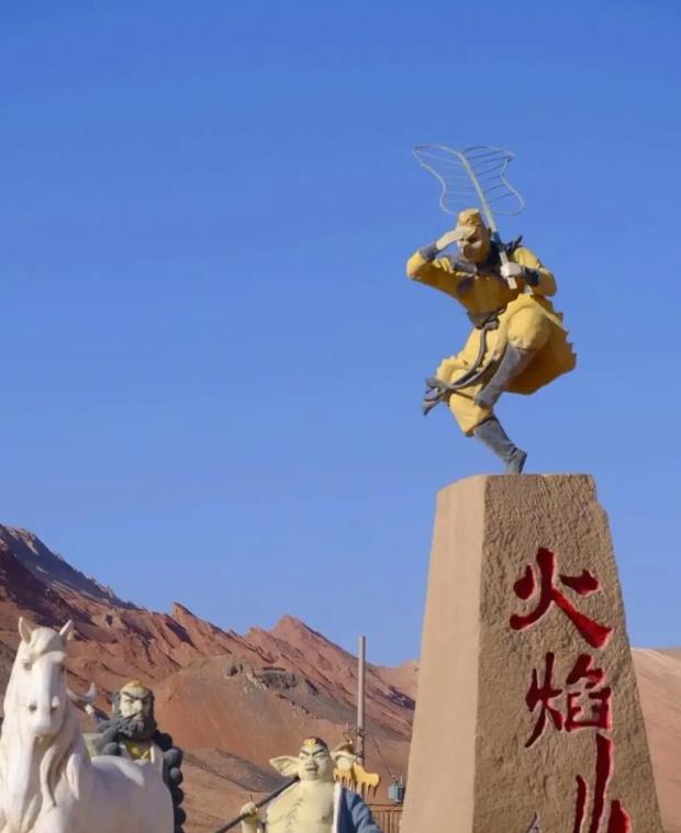 当年美猴王齐天大圣孙悟空大闹天宫,仓卒之间,一脚蹬倒了太上老君炼丹的八卦炉,有几块火炭,从天而降,恰好落在吐鲁番,就形成了火焰山。山本来是烈火熊熊,孙悟空用芭蕉扇,三下扇灭了大火,冷却后才成了今天这般模样。