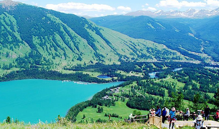 喀纳斯湖风景区被誉为现世纪年代人类净土,在这里,晴朗的天空,壮观的冰川映衬着宁静的湖水、茫茫的草原包容着幽深的原始森林、美丽而神秘的喀纳斯湖