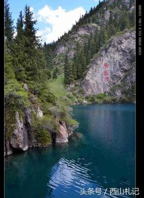 定海神针”主景区观赏天池,这里有一棵古老的榆树,传说西王母在瑶池举行盛会时水怪兴风作浪, 西王母投下一枚碧玉簪,顿时风和日丽, 碧玉簪化为榆树,从此被称为“定海神针”。