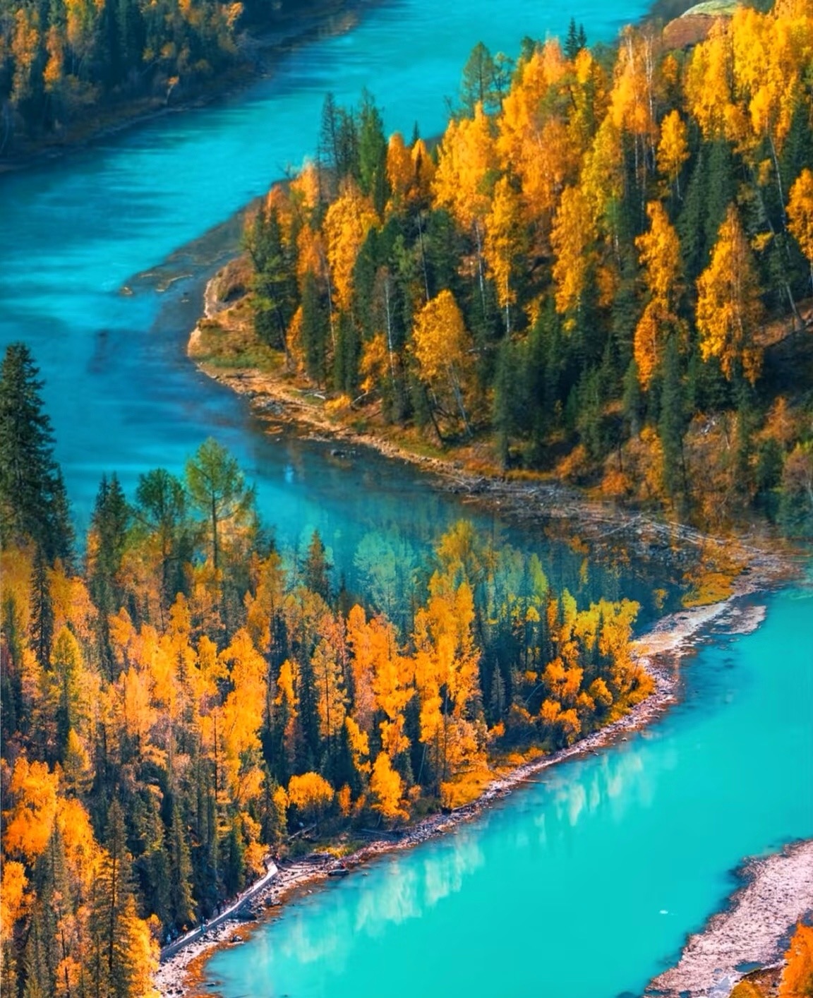乘坐区间车时,建议坐在区间车左边,可在上行时欣赏到三湾。沿喀纳斯河一路观光,欣赏原始森林、白桦林风景