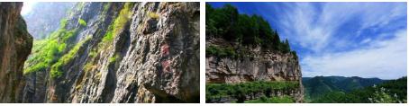 🚩石门一线(车览),石门两峰夹峙,一线中通,是河道切割形成的峡谷,故又称“石峡”。高达数十米,长约100米,天巧奇绝,犹如打开的两扇门板,石色赭暗,如同铁铸,又称“铁门关”。
