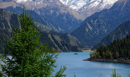 ⭕️抵达天山天池湖边, 远处的博格达峰倒映在碧绿的湖水中,游览天山天池八景中的【定海神针】🌲【南山望雪】🌲【西山观松】🌲了解王母娘娘在天池湖畔宴请周穆王的美丽传说。