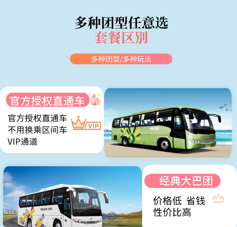 经典大巴团:市区集合+含门票+区间车+导游服务