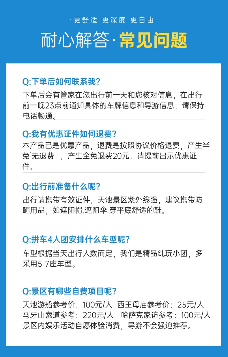 6人拼车小团:市区接送+含门票区间车 无导游服务,司机不进入景区。