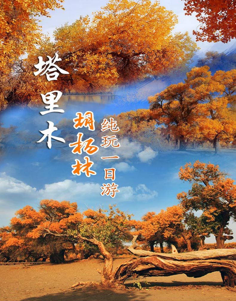出团前等候司机师傅上门接送库车市区内,参团当日免费上门接含酒店,火车站,机场等,出团具体时间以司机电话通知为准请您按照约定时间耐心等待,每日出团时间大约9点半左右;而后约9点半开始出发前往塔里木胡杨林公园;游玩约3个小时,约下午五点半结束游玩活动,启程返回库车,送回市区内的酒店和车站、机场等地。