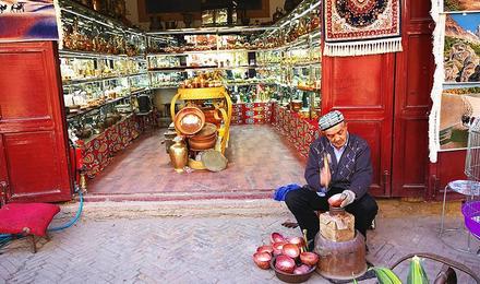 这里神似欧洲,走在街上恍惚国外漫游,人们面容深邃,个头高大,说着听不懂的话,确保持着本土的谦笑。后进入古城,城内也有四通八达的小巷相连,后前往【坎土曼巴扎铁业公社】