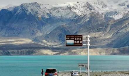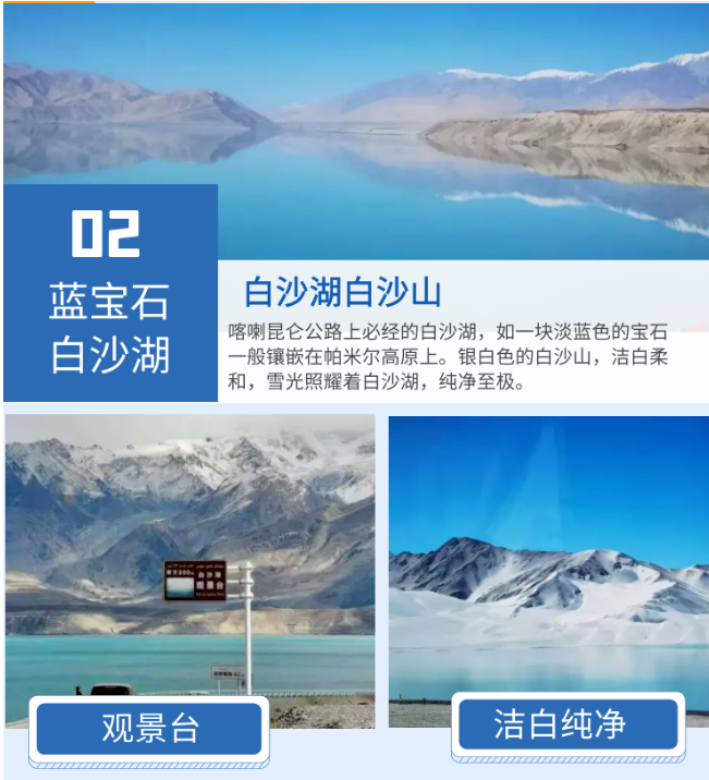 🚩到达白沙山—白沙湖景区,一进入帕米尔高原就能看到蒂芙尼蓝的湖水,水天一色,远处白沙如雪,令人陶醉。