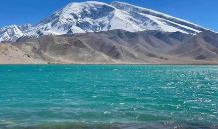 🔺喀拉库勒湖位于“冰川之父”幕士塔格峰脚下,因湖水深邃幽黯,故名“喀拉库勒”,柯尔克孜语意为黑湖。远望湖面银光闪闪,近看湖面清澈如镜。慕士塔格峰、公格尔峰和公格尔九别峰倒映其中,湖光山色,十分秀丽。