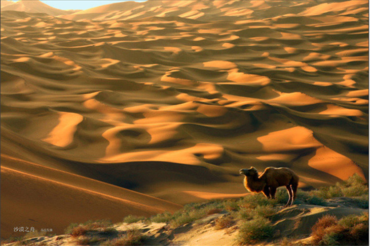 避开了正午,阳光下沙山雄浑壮观,脚下的沙子柔软细腻,爬上沙山,景色豁然开朗,丘脊线平滑流畅的延伸到远处,不经被沙漠的辽远壮阔所触动!在沙海中肆意撒欢,活力在这片热土上燃烧;