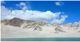 在帕米尔高原之上,有一溜大小高低不一的银色沙丘,名为“白沙山”。 在白沙山之下,有一个与之相互依存的高原湖泊,名为白沙湖。其面积宽达44平方公里,湖水玉洁冰清,蔚蓝澄澈,在蓝天下显得尤为素洁。