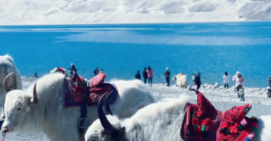 天晴的日子里 ,蓝天、 白云、雪山映衬着它在阳光下不断地变化着颜色 ,青蓝、湖蓝、深蓝、紫蓝 ,这就是帕米尔高原的治愈蓝。