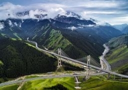 【温馨提示】果子沟大桥是双塔双索面钢桁梁斜拉桥,乘车沿路欣赏果子沟风光!果子沟大桥因交通管制,此点为乘车途观,不可下车游览。