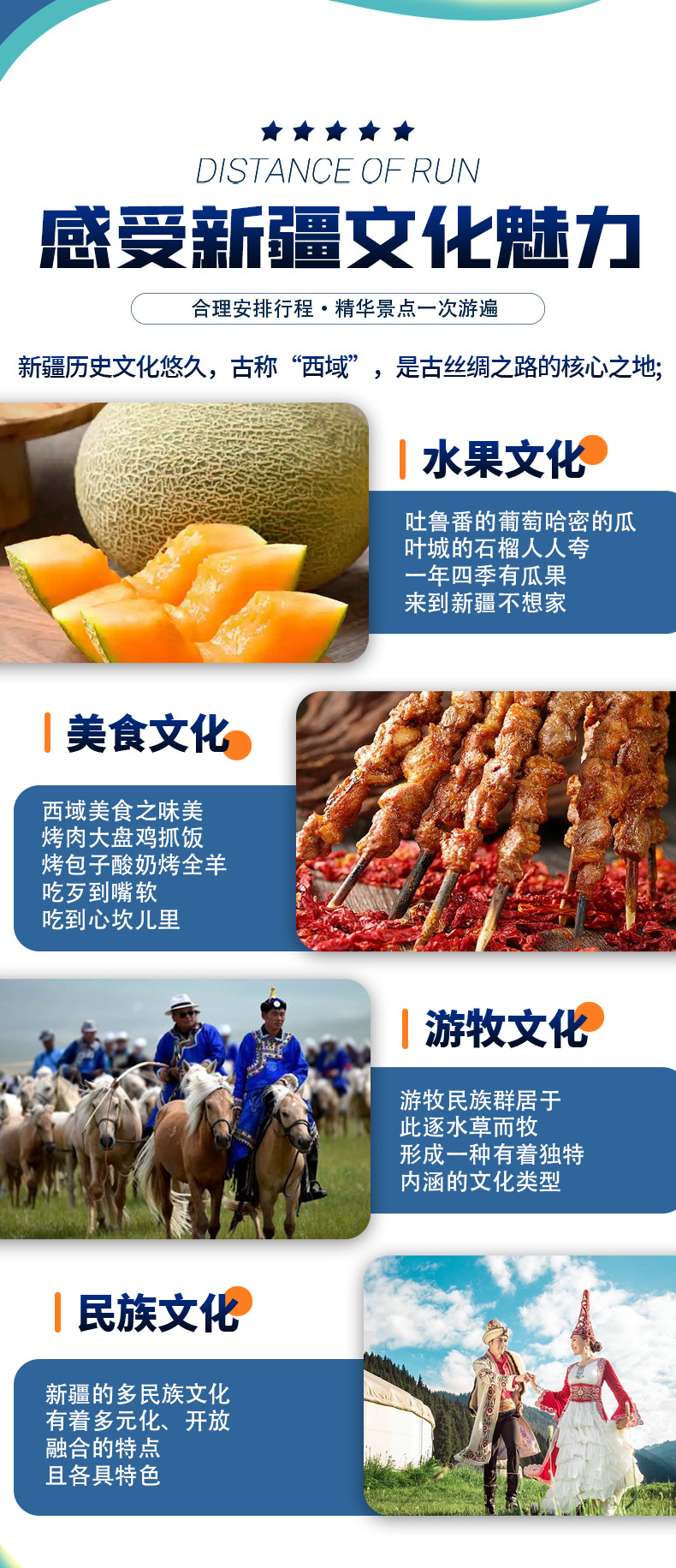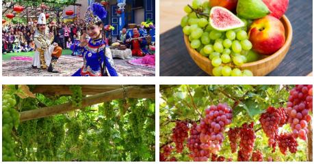 品尝当地水果、葡萄干等,欣赏并学习原生态迷人的吐鲁番风情舞蹈,一同感受维吾尔族人民葡萄架下的惬意生活,了解世界著名的葡萄故乡的异域文化。