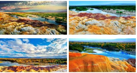 激猛的河流冲击和狂风侵蚀,河岸幻化出多种色彩,形成了独特的悬崖式雅丹地貌,故名“五彩滩”。