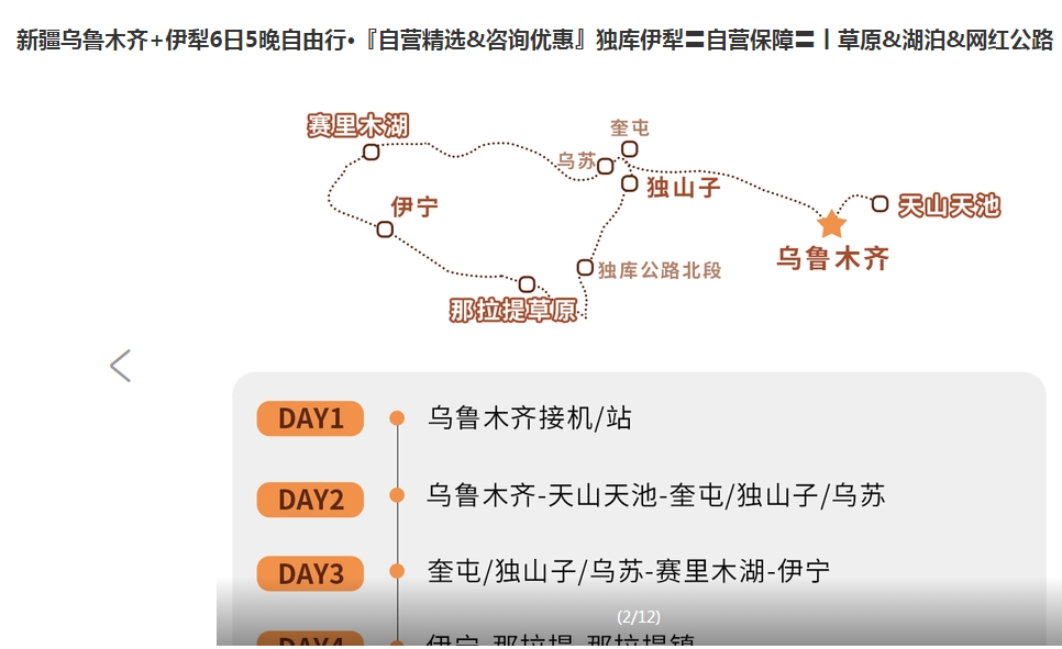 行程内游览期间用车费用 去程从行程描述出发地到乌鲁木齐机票(已含机建、燃油税)