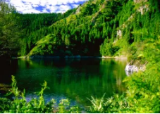 飞龙潭位于天山天池东北,距天山天池约500米,是天山天池水下泻形成的潭,习惯称飞龙潭。飞龙潭方圆百米,地处深涧,自然地形极为奇绝。神话传说中是小飞龙的巢穴,故名“飞龙潭”。这里潭水澄碧,松柏密匝,断崖陡立,飞瀑奔流,烟云飘绕,自成一处幽静神秘,动静相宜,意境不凡的特殊景观。飞龙潭一潭挂两瀑。上接飞珠泻玉,瀑声如雷,落差数十米的“飞龙吐哺”瀑布,下泻“百丈崖”,形成飞流直下,含烟蓄翠,七彩飞虹的“悬泉瑶虹”瀑布。