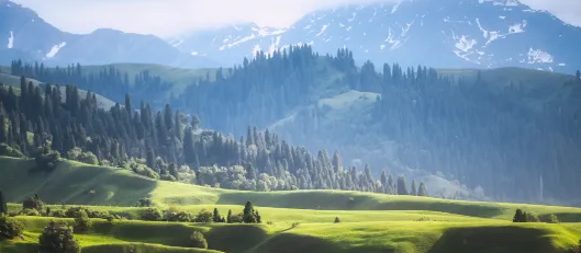 夏天,那拉提草原身披绿衣,与溪水、树林、雪山等景色交相辉映;春秋来自驾,惬意舒适,静静倾听大自然的"交响乐";冬天,云杉在冰雪中顽强屹立,宛如一幅幅水墨画