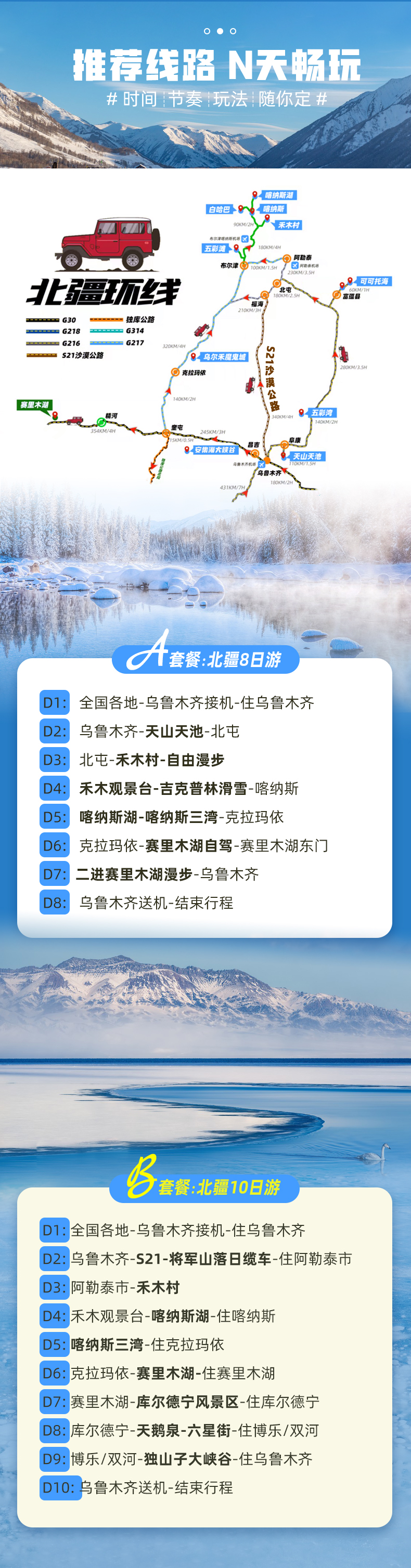 大七座/1+1豪华商务车+禾木日出+喀纳斯住景区深度游玩+那拉提草原+库尔德宁+南北疆定制+精选车型+无购物无自费