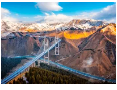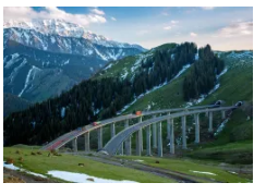 【温馨提示】果子沟大桥是双塔双索面钢桁梁斜拉桥,乘车沿路欣赏果子沟风光!果子沟大桥因交通管制,此点为乘车途观,不可下车游览。