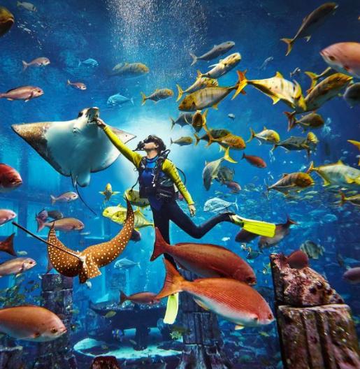 15:00-17:00:游览亚特兰蒂斯水族馆(游玩时长2小时),观看海底隧道、触摸池互动