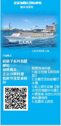 皇家加勒比国际游轮海洋光谱号船票(含4晚住宿、指定餐厅免费膳食、指定的船上设施、船上娱乐节目及活动)。