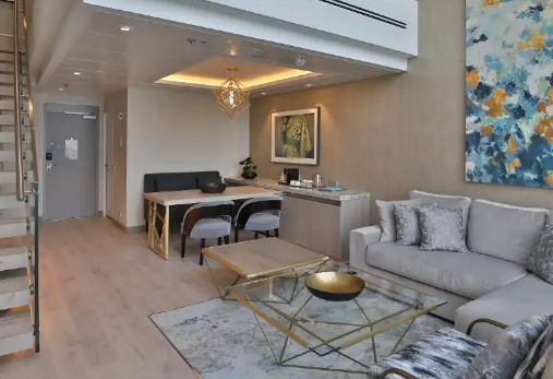 (3)2人以上入住同一间舱(仅限家庭房),第三/第四位乘客为下拉床或沙发床。