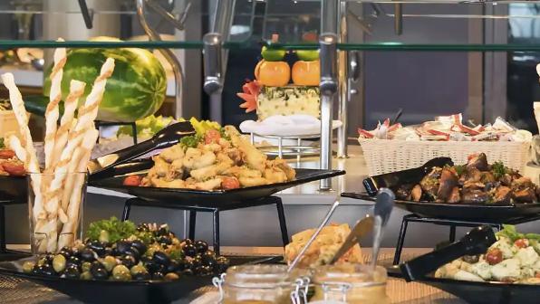 十人一桌,八菜一汤,人数不足十人时,在每人用餐标准不变的前提下调整餐食的分量。