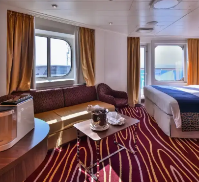 4·全程邮轮服务费。邮轮上支付,参考费用:4周岁及以上(含4周岁)的旅客,内舱(不包括巴伐利亚内舱房)、海景舱、阳台房(不包括巴伐利亚阳台房),每人每晚130港币;巴伐利亚内舱房、巴伐利亚阳台房、套房,每人每晚150港币。未满4岁的旅客免收服务费。 收费标准仅供参考,实际以船上公布价格为准。