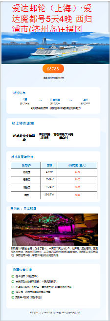 6·船上会提供部分日本港口的免费岸上游线路,可上船后在五楼岸上观光服务台报名,是否报名成功请以船上确认为准。