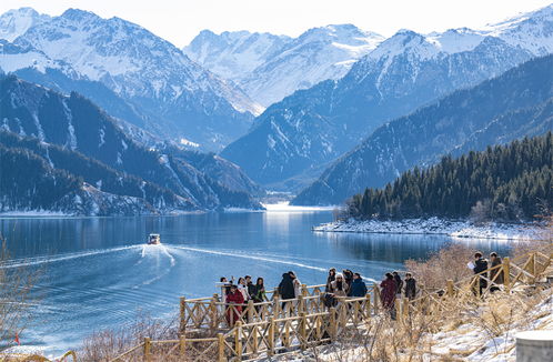 换乘景区区间车抵达天池湖边,可步行沿天山栈道抵达瑶池东岸,观赏西山望雪、南山观松、望顶天三石等。游玩天山天池,雪峰倒映,云杉环拥,碧水似镜,风光如画。