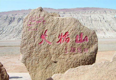 因《西游记》闻名,红砂岩地貌与高温气候形成独特景观,景区内有巨型温度计和西游主题雕塑28。
