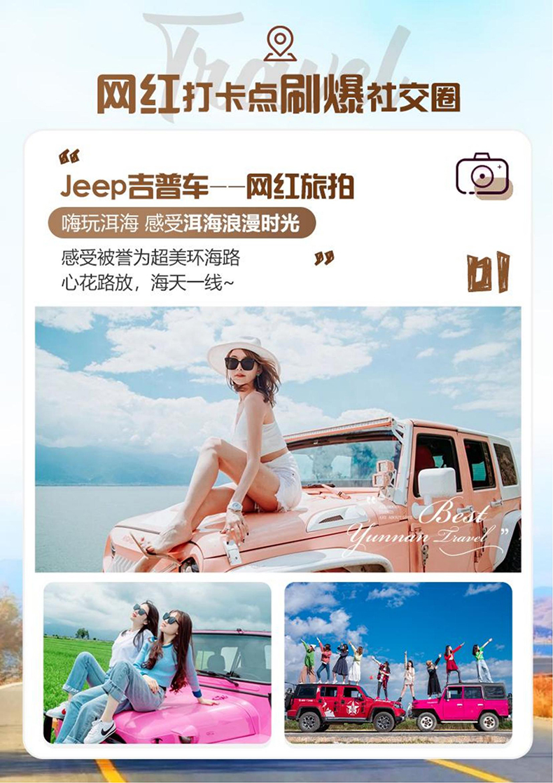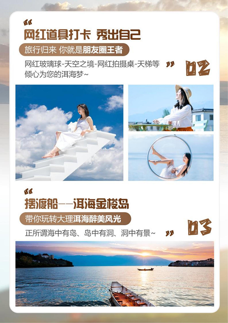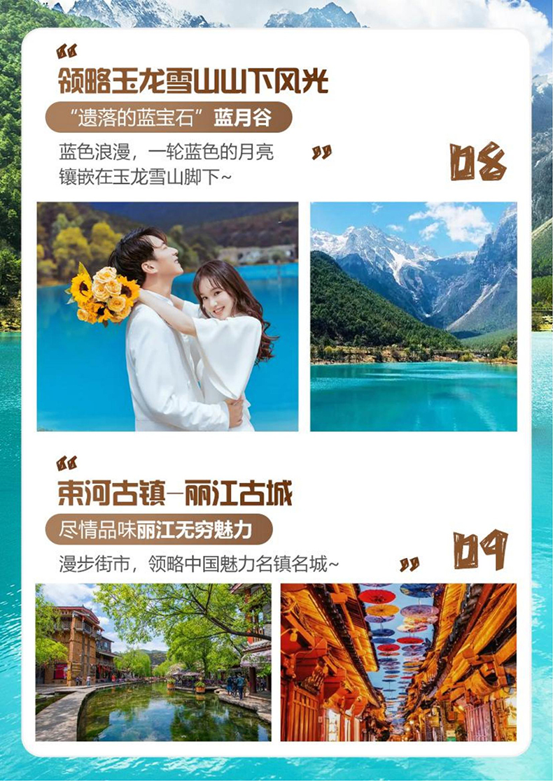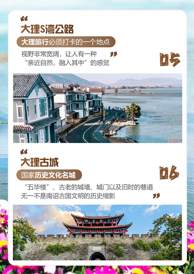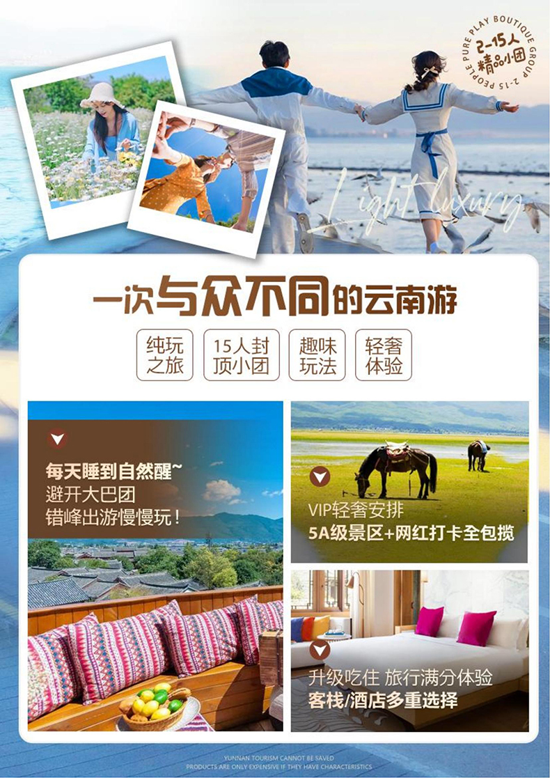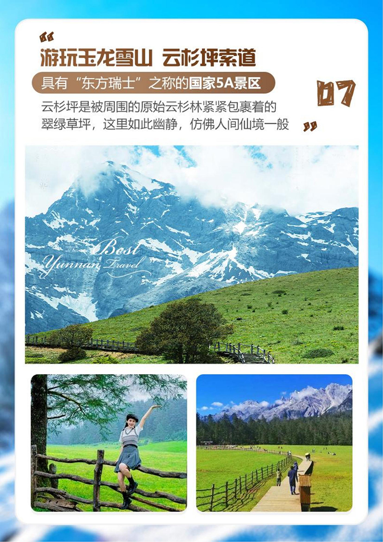 景区其他费用:大理古城电瓶车35元/人、雪山丽江蓝月谷电瓶车 60 元/人、拉市海骑马260—360元/人