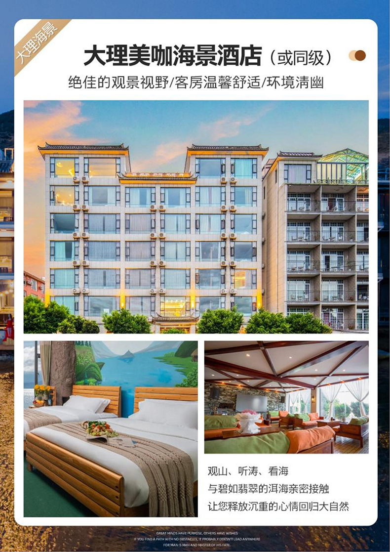 【大理参考酒店】美咖,云裳,聆心畔海,云能畅,起点,柳暗花明,喜度,罗蓝滨岸,洱海传奇,舒雅居或同级