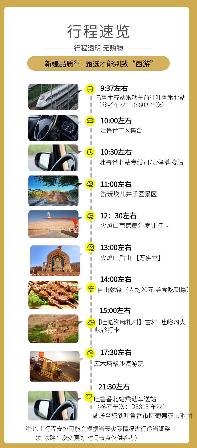 (1)景点游览、自由活动、购物店停留的时间以当天实际游览为准。